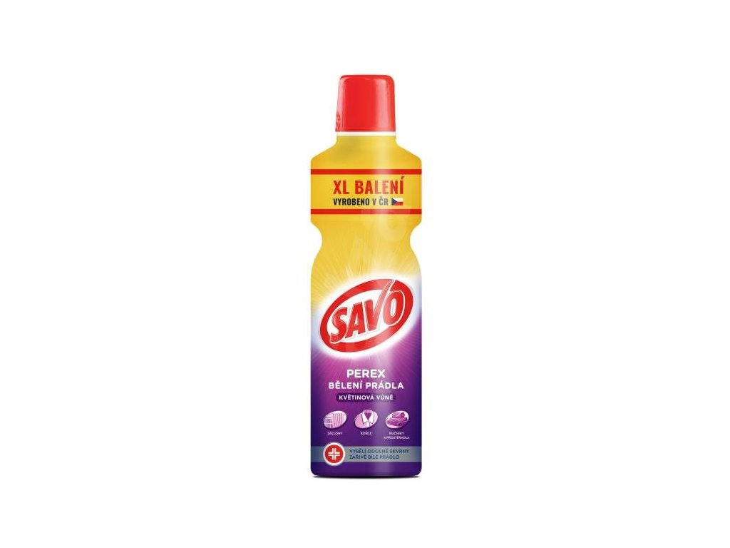 Savo Perex květinová vůně je parfémovaný přípravek pro předpírání a bělení bílého a stálobarevného prádla v automatických pračkách, ale i pro ruční bělení. Účinně odstraní skvrny již ve fázi předpírky.